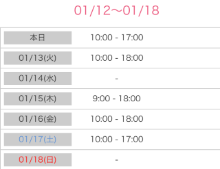 営業時間 平日  9:00~18:00 土日祝 9:00~17:00